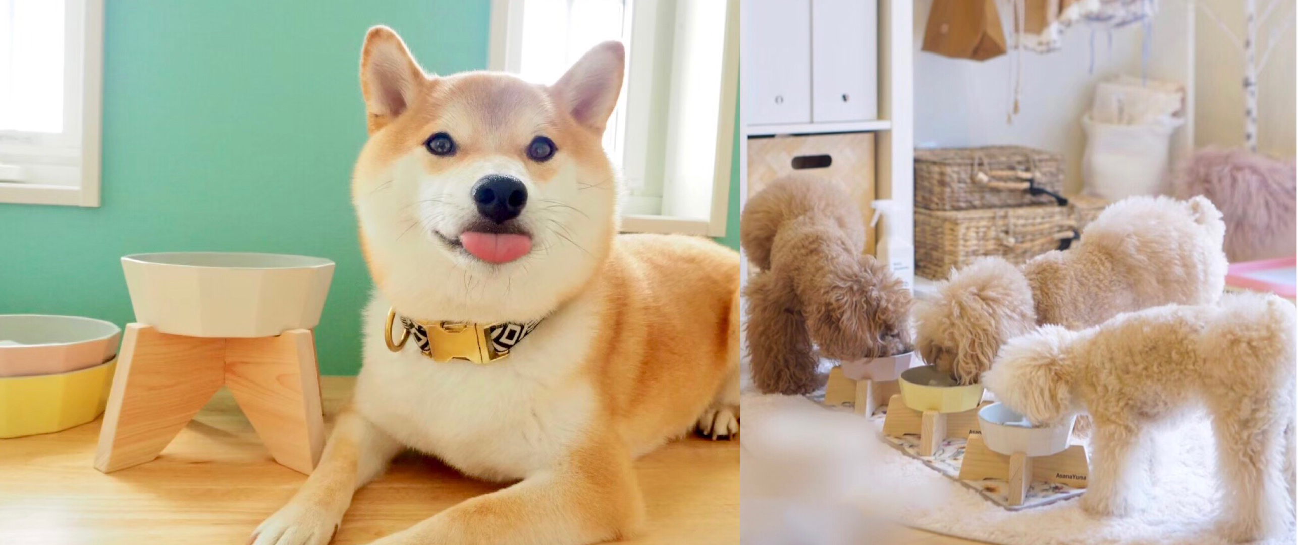 ※ご使用のモニターやお部屋の照明等によって、実際の商品の色と異なって見える場合があります。 【合計一万円以上のお買い物で送料無料】 AsanaYunaオリジナル早食い防止フードボウル【Sサイズ】と国産ヒノキ製スタンドのセット。 フードボウルのカラーは銀杏-icho-(黄色とグレーのバイカラー)です。 ※手作業でひとつひとつ生産しているため多少の釉薬のムラが見られることがございますが、瀬戸焼の風合いとしてお楽しみください。 -----フードボウルについて----- ・材質 半磁器(瀬戸焼) ・Sサイズ 上部直径:約12.5cm 下部直径:約10.5cm 高さ:約4.0cm 突起部分→幅:約6.0cm 高さ:約2.0cm 若干の誤差がございますので ご了承ください。 AsanaYunaの食器は焼き物の町、愛知県瀬戸市でつくられています。 こども食器も製造されている窯元で妥協することなく打ち合わせを重ね、安心安全な器が完成しました。 [正12角形、でも洗いやすい] 内側は角をなくしツルリとしています。洗いやすさにもこだわりました。 [中央の「×」マークの突起で早食いの防止が期待できます] 犬の早食いにはたくさんのリスクがあります。 ゆっくり食べさせることで食べ物の逆流や食べ過ぎによる肥満などのトラブルを抑えることができます。 突起部分についても、できるだけなだらかに仕上げたので早食い防止ボウルならではの洗いにくさを抑えました。 [鉛・カドミウムは専門機関で検査済み] 健康被害が心配される、鉛・カドミウム検査(重金属溶出試験)実施済です。安心してご使用ください! -----食器スタンドについて----- ・材質 国産ヒノキ ・サイズ 上部幅:約15.0cm 下部幅:約18.0cm 高さ:約5.0.cm 若干の誤差がございますので ご了承ください。 [職人さんによる手仕事] 天然の抗菌・消臭効果のある国産ヒノキを使用しており、余計な装飾はせず、いろいろなインテリアに自然と溶け込むようなデザインにしました。 日本の職人さんが一貫して生産し、無塗装でひとつひとつ丁寧に研磨して仕上げています。 [食器を床置きしていた飼い主さんへ] 床置きの食器では、体を大きくかがめて食べる必要がある為犬の首や腰に負担がかかっています。本当はつらい思いで食事をしているのかもしれません。 将来の腰痛予防の為にも、今まで使用していなかったコにもAsanaYuna食器スタンドをプレゼントしてみませんか? 【ご注意ください】 誤食や思わぬ事故を防ぐため、飼い主さまの目の届くところでご使用いただき、食事がお終わったらフードボウルやスタンドは片づけてください。 ご使用にあたっては商品に添付されている注意書きをお読みください。 【ご注意ください】 誤食や思わぬ事故を防ぐため、飼い主さまの目の届くところでご使用いただき、食事がお終わったらフードボウルやスタンドは片づけてください。 ご使用にあたっては商品に添付されている注意書きをお読みください。 お買い物の前にコチラを必ずお読みください。 ↓【SHOPPINGガイド】↓ https://asanayuna.shopinfo.jp/pages/2209230/page_201808241709